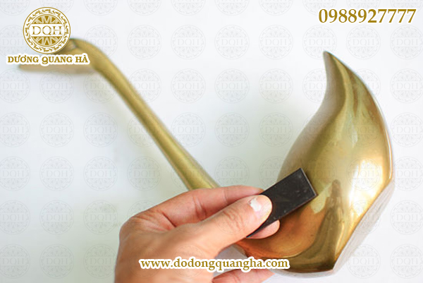 Dùng vải nỉ để đánh bóng đồ đồng nguyên chất